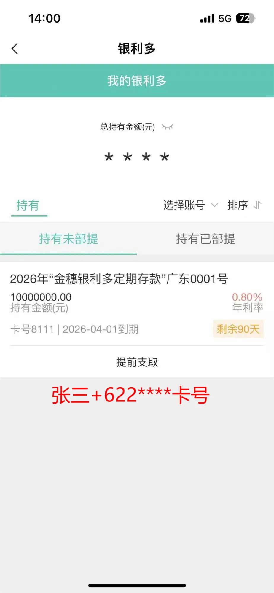 农业银行app-我的-资产-定期,然后提前支取