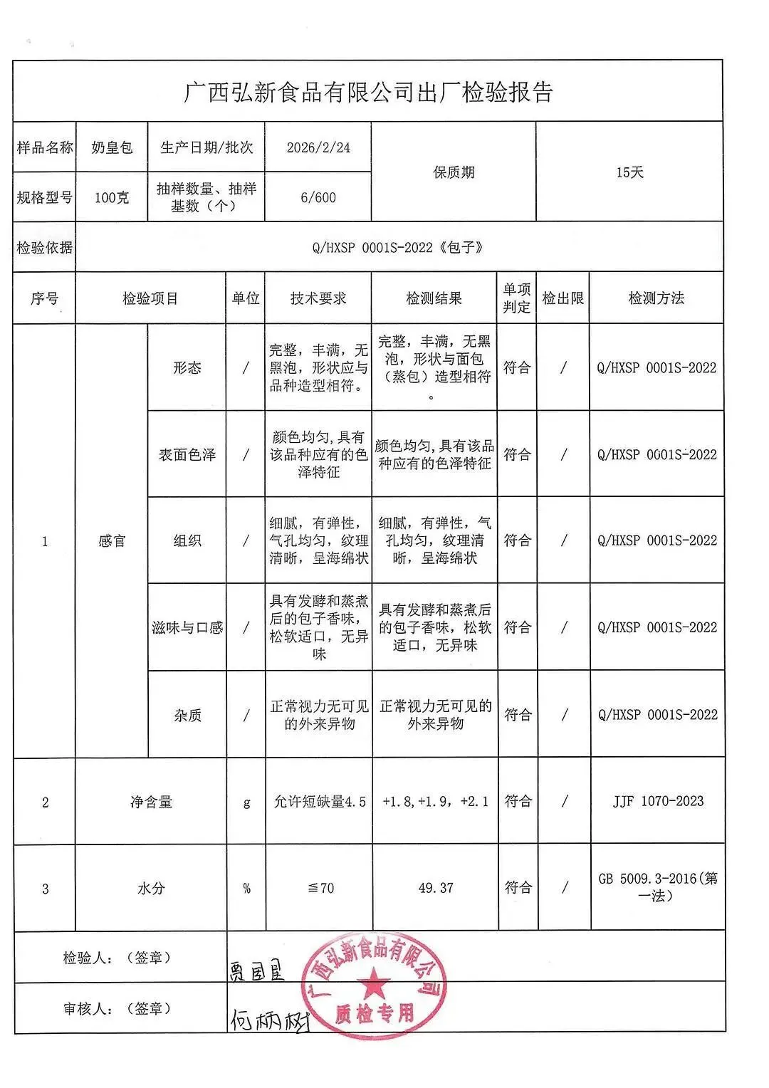 金浦供应链&禾美农业-02月27日包子、面包、面粉、淀粉、牛奶检测报告