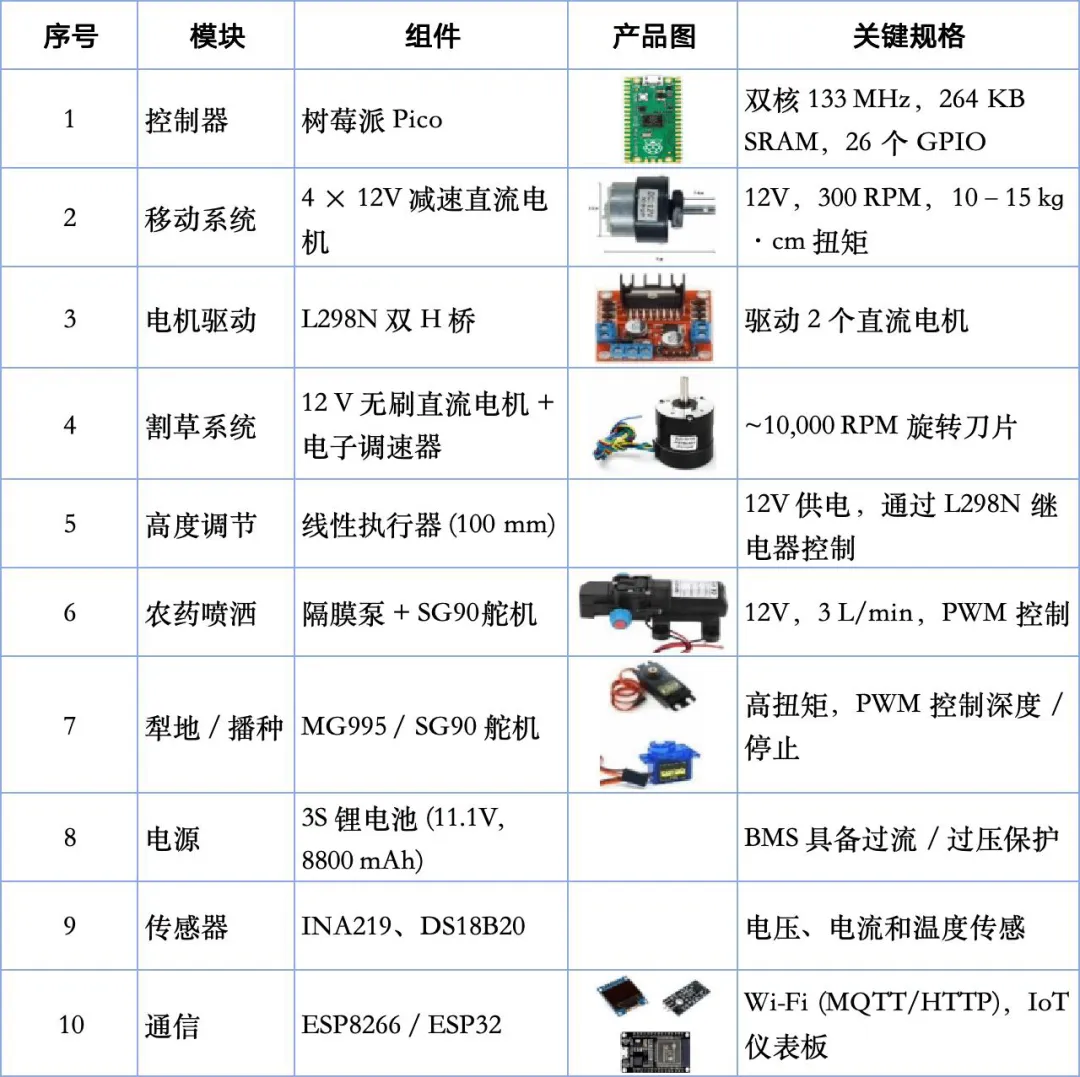 主控芯片用树莓派Pico和ESP32,几十块钱,开源社区随便调;电机、驱动、泵阀全用市售通用件,不搞定制化;太阳能供电,不用拉电线、建充电桩,眼光就是能源。