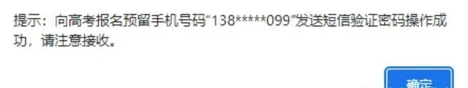 提示:向手机号发送密码短信,此时,手机会收到省考试院发的登录密码短信,提醒考生使用新密码登录并立即修改密码。