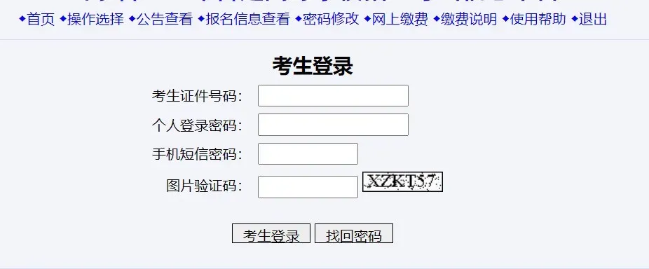 点击主页下边的“考生登录”或菜单“考生登录”打开登录页面,如下图: