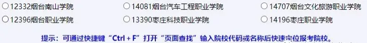 这里按院校名称顺序排列显示所有招生院校。因院校数量较多,如上图提示:可通过快捷键“Ctrl+F”打开“页面查找”输入院校代码或名称后快速定位报考院校。