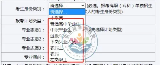 说明 3:退役军人考生身份类别已经过确认,填报志愿时不再允许自行修改;其他考生身份类别显示“未采集”,考生填报志愿时必须先选择考生身份类别。