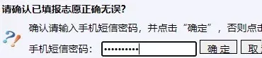 点击“保存报考志愿”按钮,系统提示:请确认已填报志愿正确无误?确认请输入手机短信密码,并点击“确定”,否则点击“取消”。如下图: