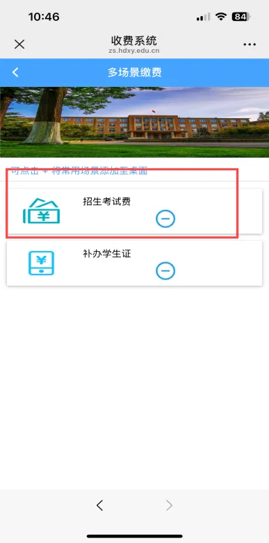 3.在缴费场景中点击更多或者加号,选择缴费项目。