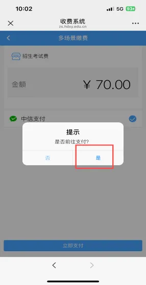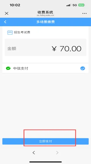 5.核对收费金额,点击“缴费”,点击立即支付,跳转微信支付(浦发支付为收款方银行,显示浦发支付无需处理,不影响下一步微信支付)。
