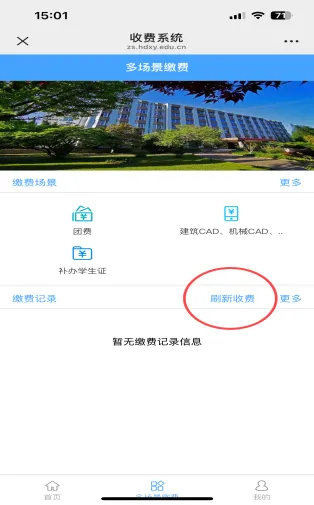 6.缴费成功后返回界面点击刷新收费,避免数据不更新重复缴费。