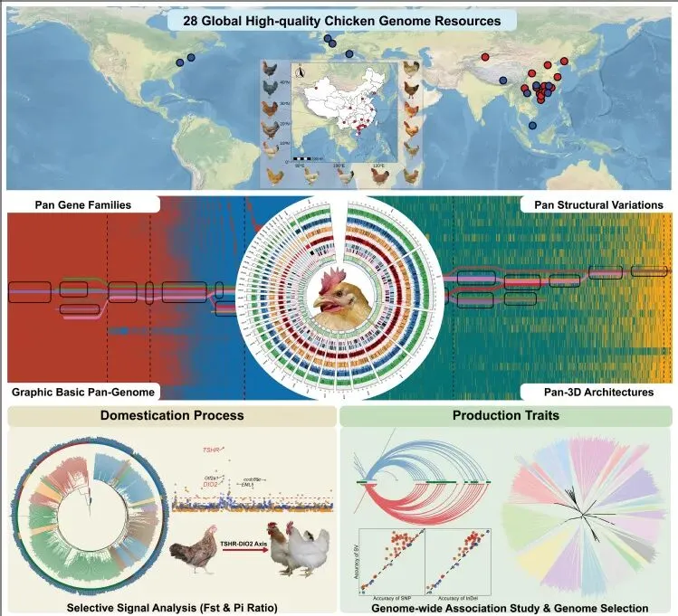 近日,华南农业大学合作在Advanced Science期刊上发表题为“Pan-3D Genome Analysis Reveals the Roles of Structural Variation in Chicken Chromatin Architectures, Domestication and Production Traits”的研究成果。华南农业大学动物科学学院博士研究生周震为论文第一作者。华南农业大学聂庆华教授、罗文教授、蔡柏林副教授和江苏省家禽科学研究所束婧婷研究员为该论文的共同通讯作者。
