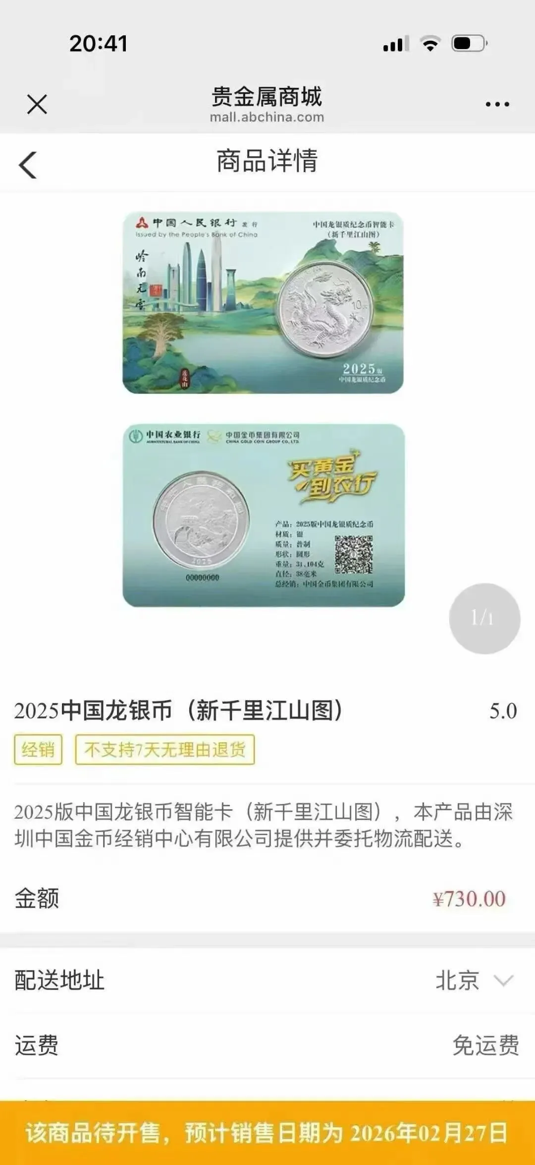 农行app搜"千里江山",购买2025中国龙银币(新千里江山图),