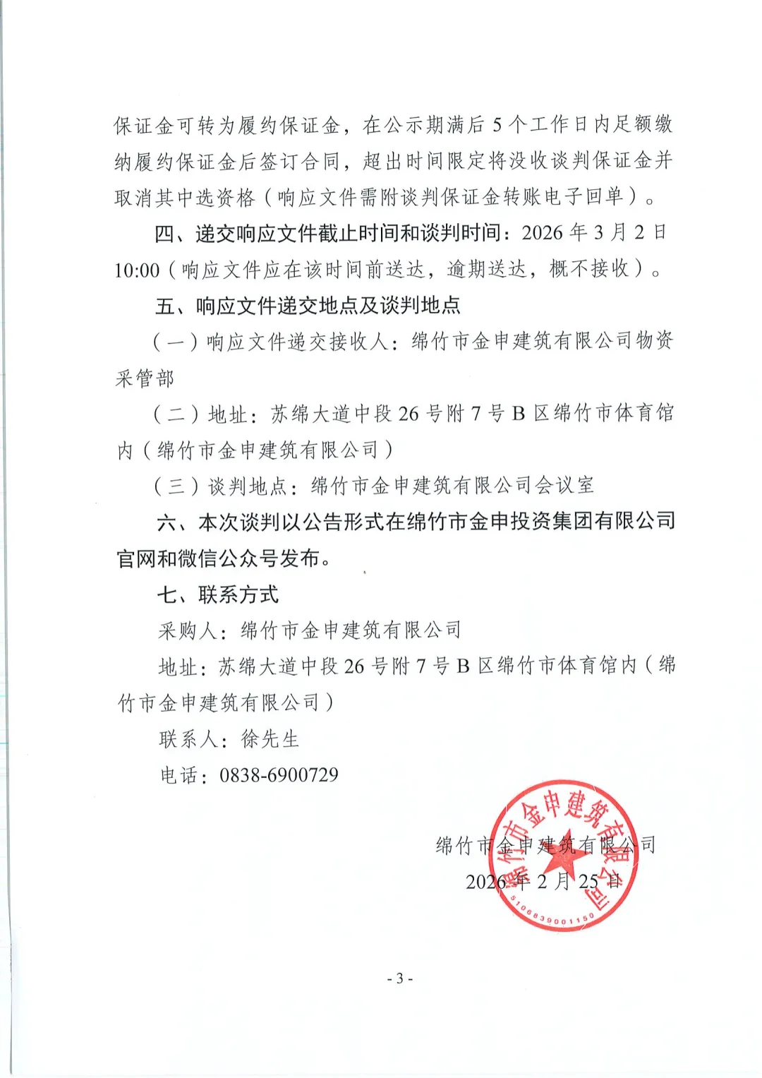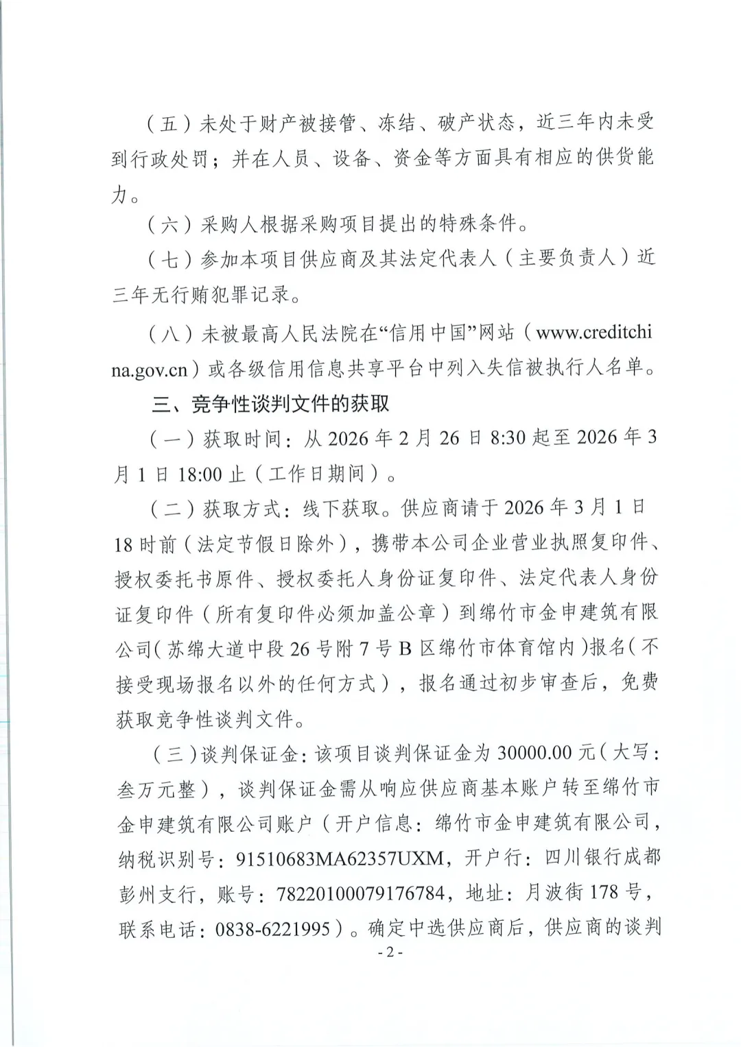 绵竹市金申建筑有限公司关于绵竹市农业科技碳循环双创产业融合示范园项目(二期)商品混凝士材料采购竞争性谈判公告