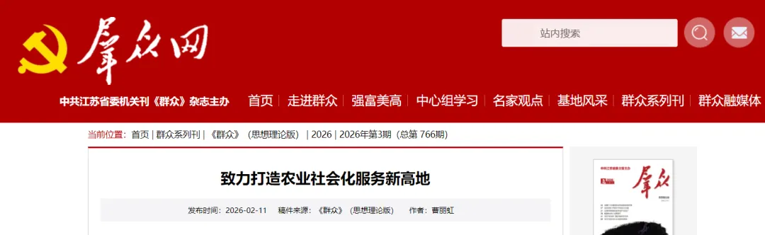 党的二十届四中全会提出,要“完善便捷高效的农业社会化服务体系”。当前,如何进一步深化农村改革,破解“谁来种地”“怎么种好地”的难题,必须把加快构建便捷高效的农业社会化服务体系摆在突出位置。自2025年以来,江苏聚焦农业科技创新引领与生产服务要素集聚,推进区域性农业综合服务中心(以下简称“服务中心”)建设,以县域为单位实现服务中心建设全面覆盖和能力全面提升,在农业社会化服务领域切实扛起经济大省挑大梁的使命担当。为探索服务中心建设的有效路径,省农业农村厅深入开展实地调研,与基层干部、农户和经营主体座谈交流,全面梳理建设实践中的经验做法与问题短板,总结提炼出可复制、可推广的建设路径与运营模式。