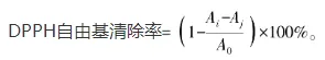 式(2)中,Ai为混合液的吸光度;A0为用蒸馏水替代样液测得的吸光度;Aj为用无水乙醇替代DPPH溶液测得的吸光度。