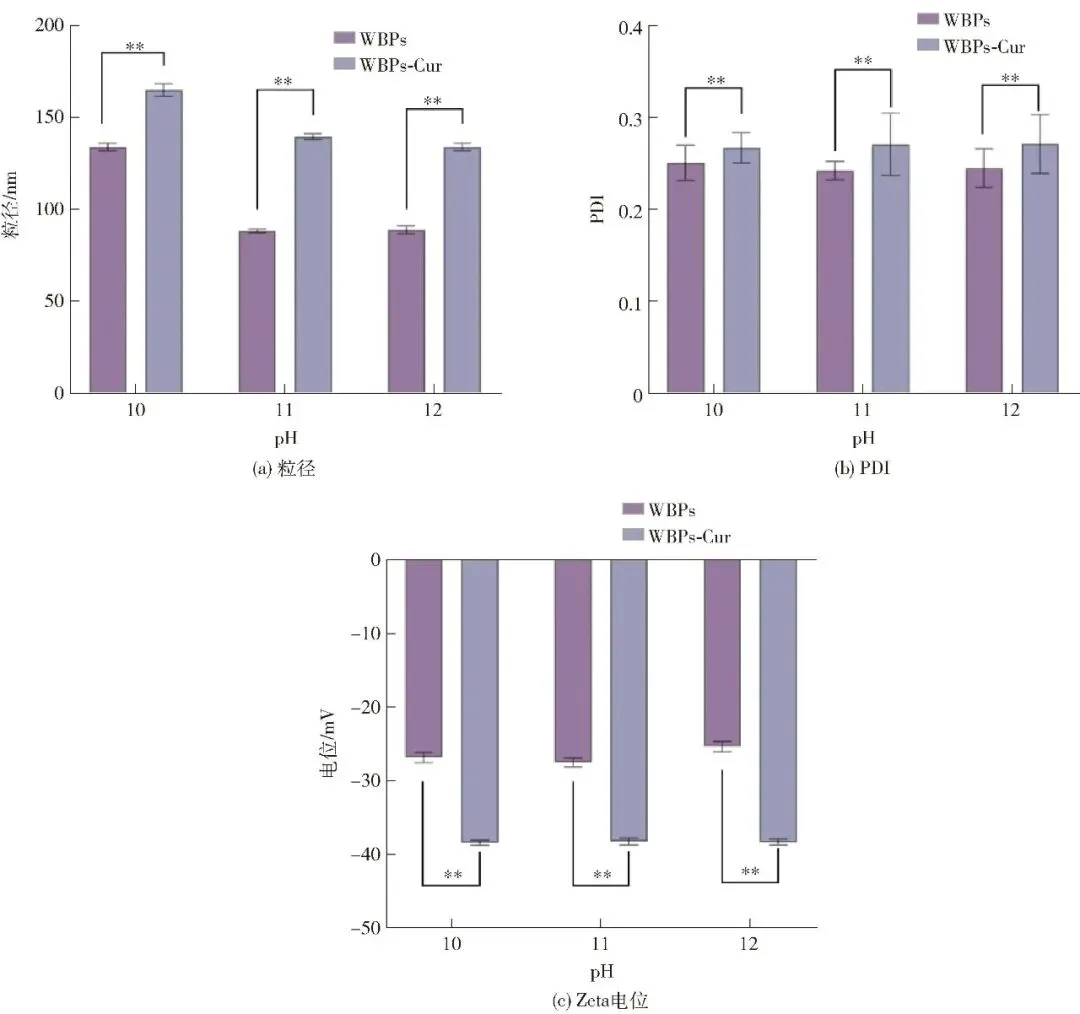 2.2.1 不同pH值诱导的WBPs、WBPs-Cur纳米复合物的粒径、多分散指数分布和Zeta电位分析