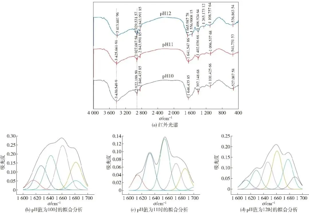 图4 不同pH值时WBPs-Cur红外光谱及其拟合分析