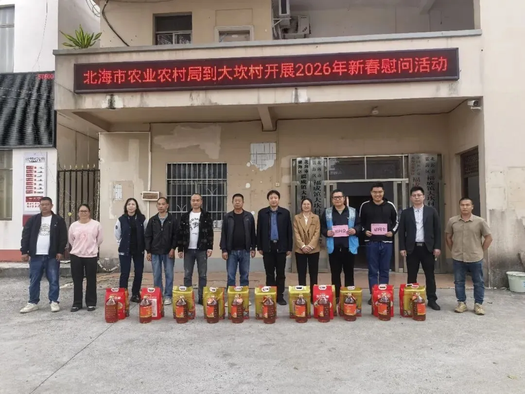 新春将至,暖意先行。2月5日,市农业农村局党组书记、局长何来带队到银海区福成镇大坎村和合浦县西场镇亚乪村,开展2026年春节走访慰问活动,向驻村工作队和村“两委”干部送上节日问候,对他们的辛勤工作表示感谢,并鼓励大家在新的一年里继续担当作为,推动乡村振兴不断取得新成效。