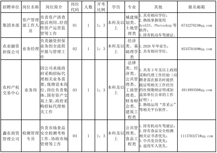 因工作需要,张家港市农业发展集团、新农合供销集团及下属公司面向社会公开招聘工作人员,现将有关事项公告如下: