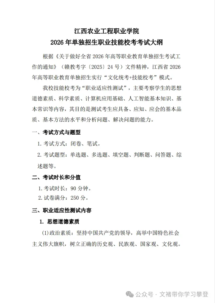 江西农业工程职业学院2026 年高职单招考试