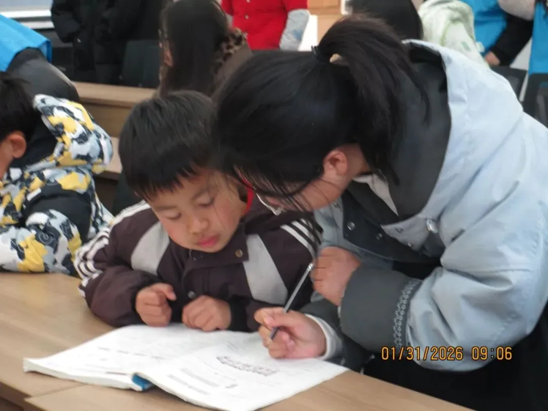 首日上午的核心环节是课业辅导。实践团队的志愿者与社区志愿者们化身为 “临时辅导员”,在桌椅间耐心穿梭,俯身倾听孩子们的问题,用轻松易懂的方式讲解知识点。