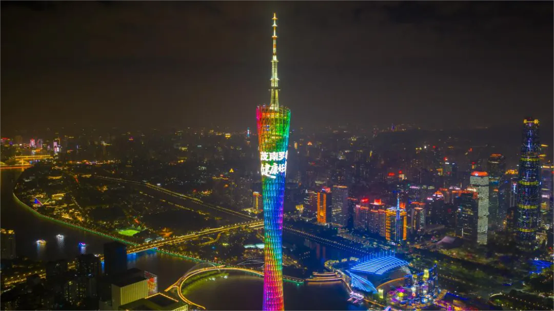 2月3日晚,“茂南罗非鱼,健康好年鱼”的字样在广州塔塔身流转。