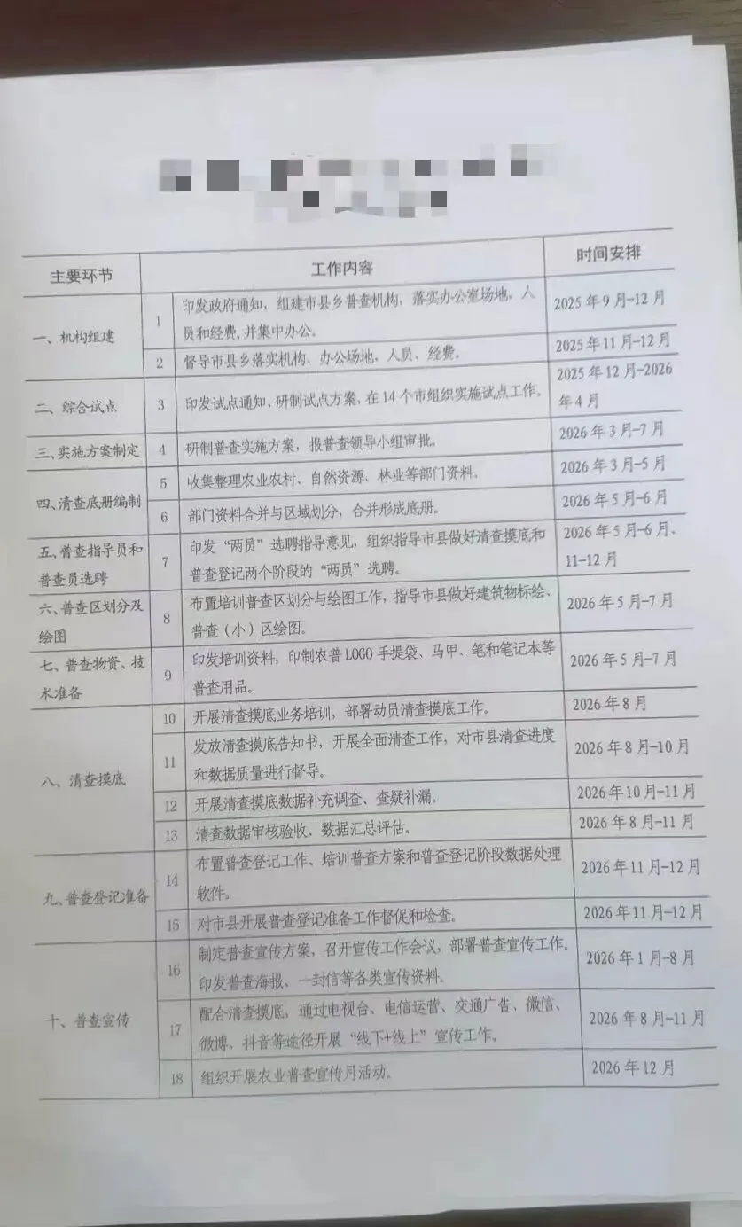 >农业普查开始的各个节点时间有么?