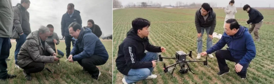 1. 马庄乡西谢村:小麦品种为马兰1号,2025年10月27日,采用15cm等行距播种,播量为21.5 kg/亩,底肥为每亩50 kg复合肥(N-P2O5-K2O 18-18-18)。冬前进行了灌溉,但未镇压,农田裂缝较多。目前小麦个体大部分为3叶1心,1个分蘖,次生根2-3条,群体总茎数90万/亩左右,整体属二类苗。麦田土壤墒情适宜,有少量阔叶杂草,未发现病虫害。