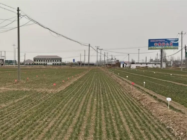 2. 安平县西两洼乡郑家庄村:小麦品种为农大761,2025年10月20日,采用12.5 cm等行距播种,播量为17.5 kg/亩;底肥每亩使用30 kg复合肥(N-P2O5-K2O 18-21-5)。冬前进行了冬灌,但未进行镇压。目前小麦个体多为3叶1心,次生根数量为2条,群体茎数为50万/亩左右。土壤墒情较好,表土裂缝较多,麦田内未发现明显病虫害和杂草。