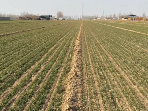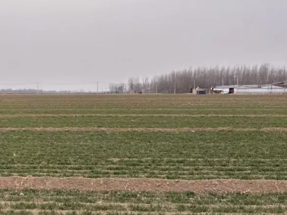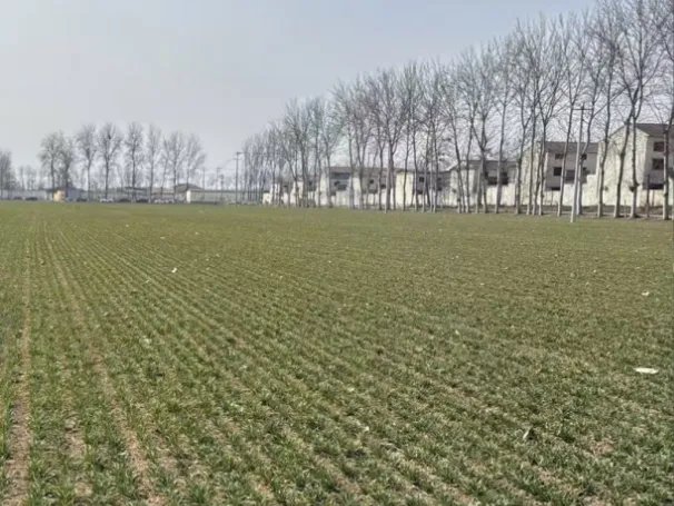 2. 马庄乡马庄村:小麦品种为马兰1号,2025年10月25日,采用15cm等行距播种,播量为21.5 kg/亩。冬前进行了灌溉,但未镇压,农田裂缝较多。目前小麦个体3叶1心,次生根3-4条,1个分蘖,群体总茎数70万/亩左右,属二类苗。麦田土壤墒情适宜,有少量阔叶杂草,未发现病虫害。