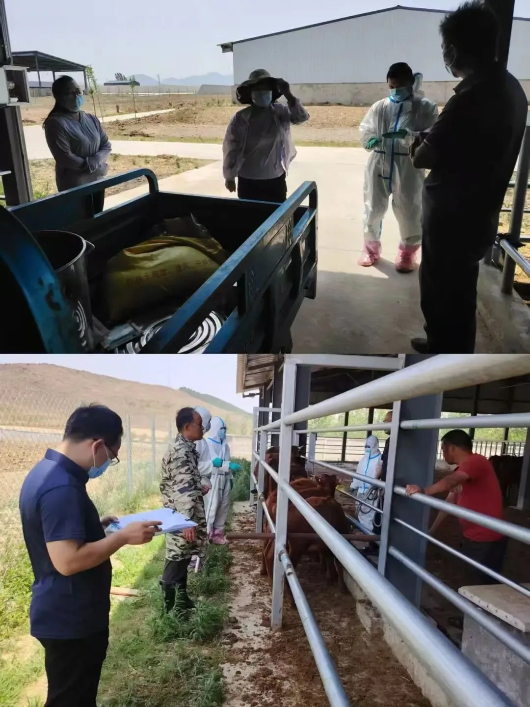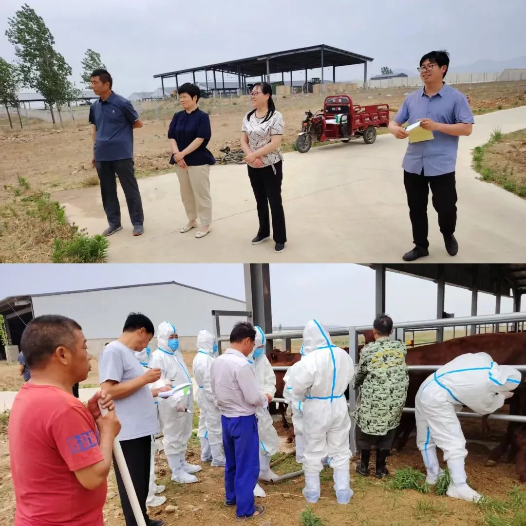 科长胡文发一行6人,到常村镇羴牛畜禽良种繁育有限公司调查指导核病接种监测工作,