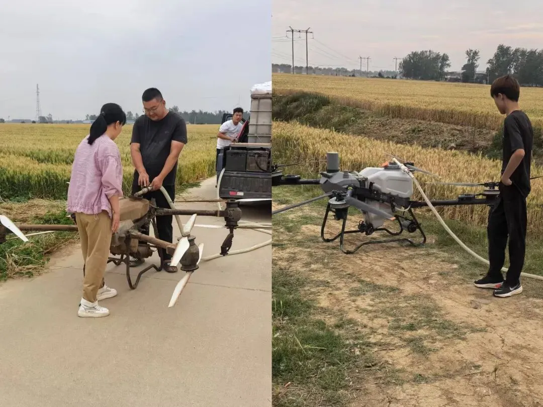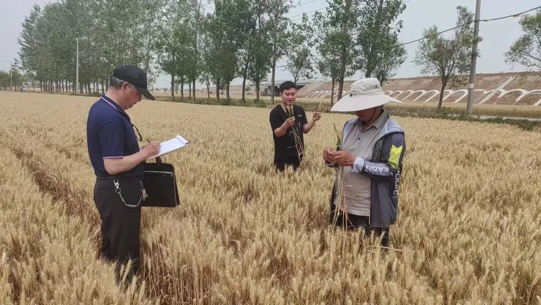 站长刘丰举一行十人,到任店镇寺西村小麦病虫草害全程绿色防控试点,