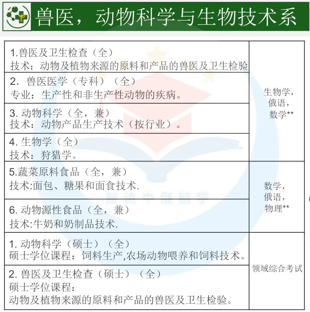 兽医医学与畜牧系培养未来兽医, 动物工程师, 兽医卫生专家.在学院有专业的研究实验室, 解剖博物馆, 饲养大型和小型动物的实验动物饲养处, 配备现代化设备的兽医室.