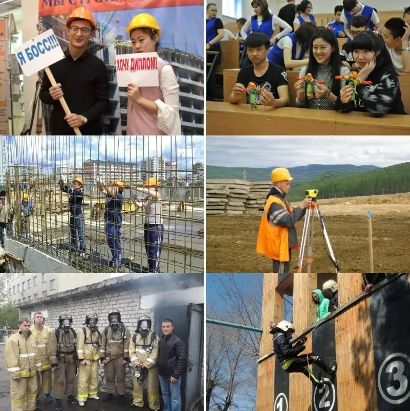 现在我校毕业生在远东联邦区和阿穆尔州的企业工作 (以上所列), 例子, 紧急救灾部门以下职位: 建筑师, 设计师, 建筑和水力工程建设的测试和使用研究员.