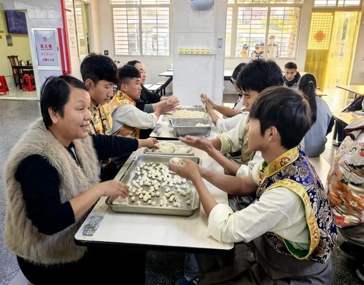 藏历新年期间,学校热闹非凡。代理家长们和西藏班的孩子们围在案板前,一起动手制作藏历新年的传统美食——“古突”。揉面、搓圆……老师们学得有模有样,同学们当起了“小老师”,手把手教着“阿爸阿妈”。欢声笑语中,家乡的味道一点点在指尖重现。“以前在家里都是看着阿妈做,今年自己动手,还教会了老师,感觉很有成就感!”来自拉萨的德吉笑着说。一碗碗热气腾腾的古突端上桌,咬一口,是家乡的味道,更是师生情谊的温暖。