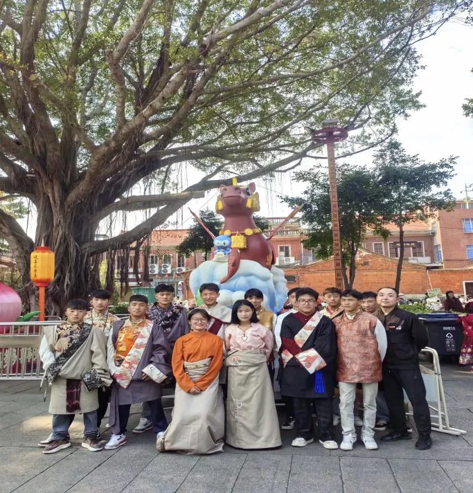正月里,同学们穿上鲜艳的藏装,到市区与“六合同风马”拍照。师生一同登上郑成功公园,用脚步致敬民族英雄,在行走中感受民族团结的力量,在同学们心中种下了爱国、团结、奋进的种子。“马上成功”的美好寓意,也寄托着对西藏班学子新年的祝福——愿他们在成长路上勇往直前,步步登高。雪域少年的灿烂笑容与泉州的暖阳春色交融,那一刻,故乡和远方,原来可以离得这么近。