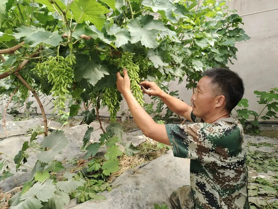 正在大棚里给葡萄定穗的果农李祖国介绍道。