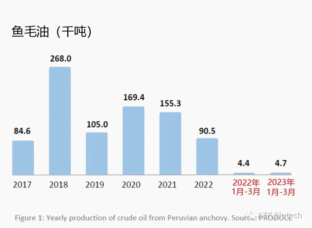 全球气候持续变暖不仅导致渔业资源整体恶化,更通过频繁引发自然灾害给局部带来灾难。2022年,来自秘鲁中北部第II季度的渔业数据显示,受“厄尔尼诺”的影响,鳀鱼的捕捞量虽然达到配额,但是鱼油产量只有预期的1/3,关键原因是鱼油脂含量只有0.89%,大大低于正常的3-4%。