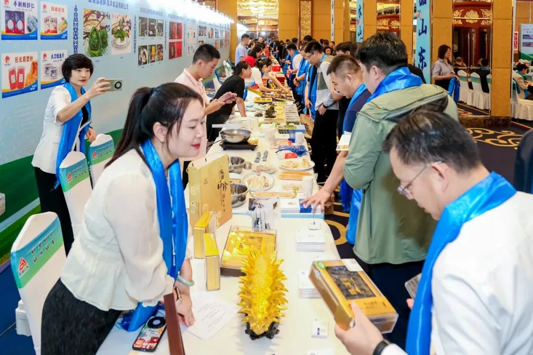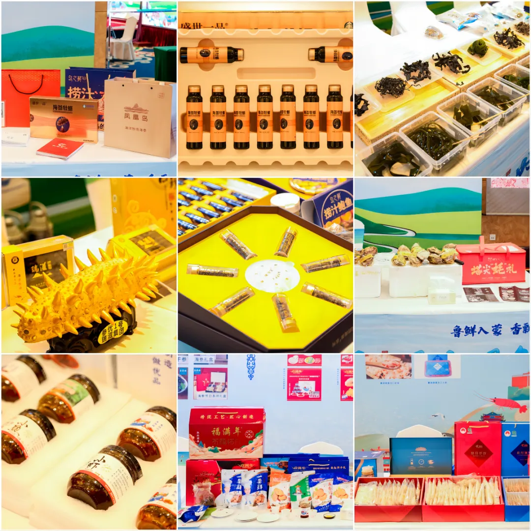来自山东青岛、威海、东营、滨州等市的14家山东渔业品牌企业及行业协会携青岛灵山岛海参、乳山牡蛎、荣成海带、荣成裙带、黄河口大闸蟹、黄河口虾皮、滨州盐田虾等百余种山东名牌水产品和优势特色水产品亮相活动现场。