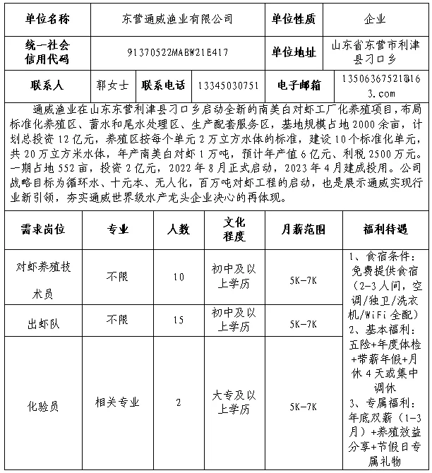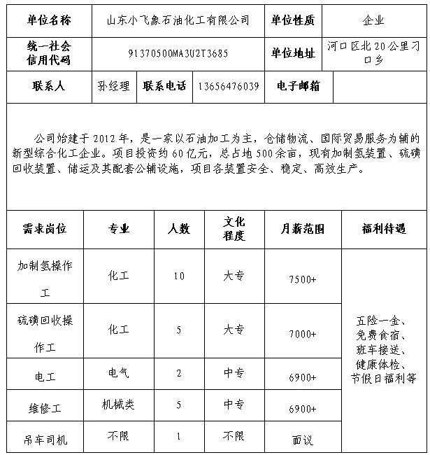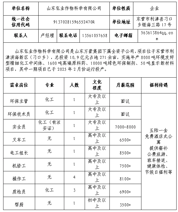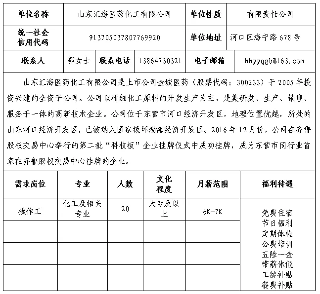 (东营招聘)东营通威渔业、山东汇海医药、山东弘业作物、山东海泽金工程、山东小飞象石油5家企业招聘