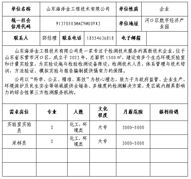 1. 以上具体招聘信息由企业负责解释。岗位信息具有时效性,自发布之日起15天内有效,信息由用人单位提供并对其真实性负责。