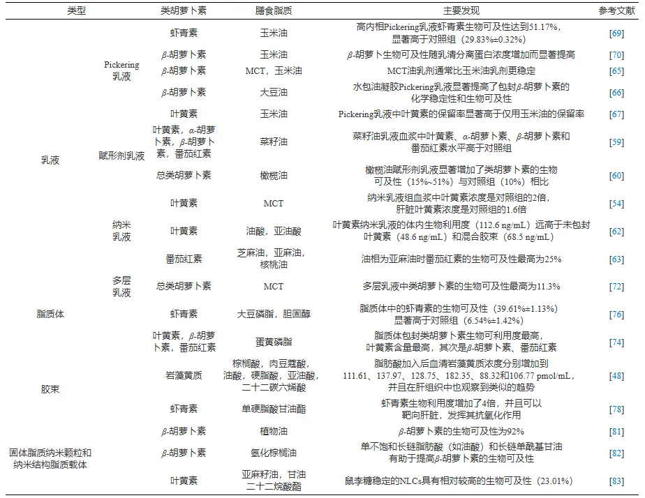 表  2基于膳食脂质制备的递送体系对类胡萝卜素口服吸收的影响