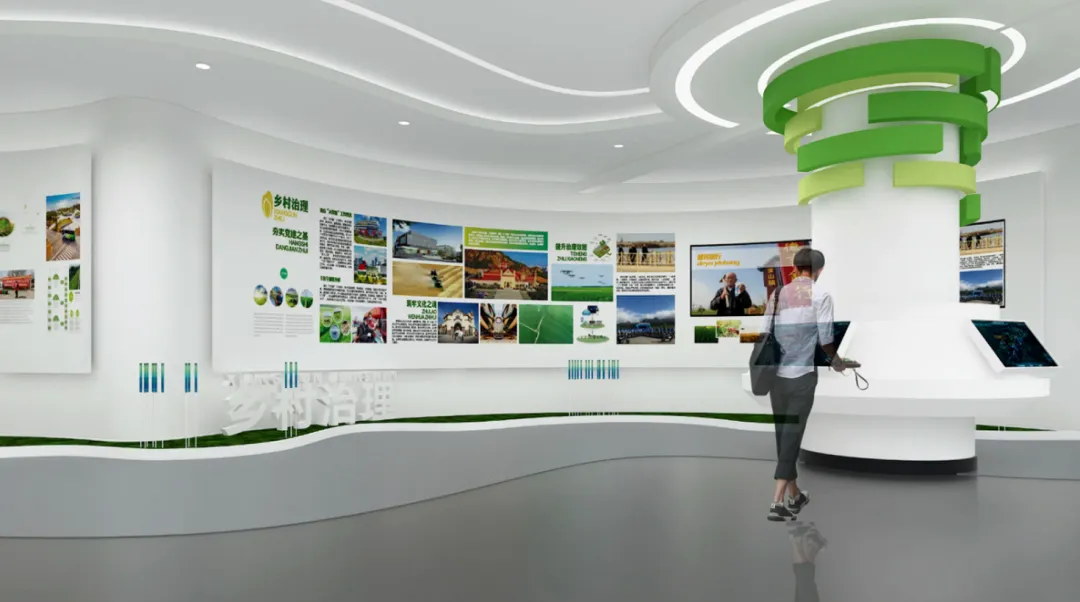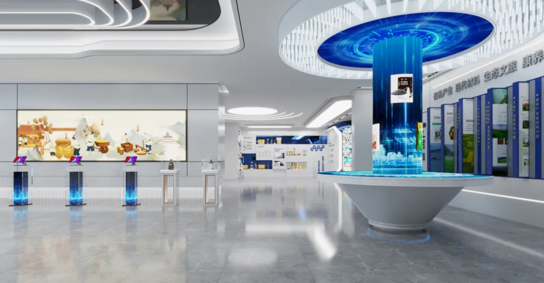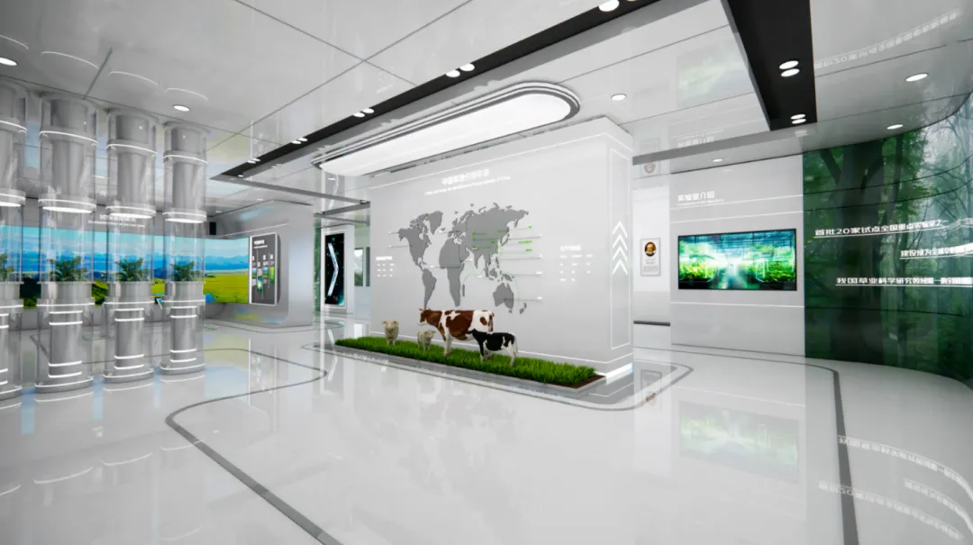 序厅→产业发展区・逐绿之路(产业了解)→智慧农业区・科创赋能(科技探索)→科研成果区・硬核实力(科创共鸣)→农旅融合区・七彩甘州(打卡 + 互动 + 乡村振兴共鸣)→尾厅・未来展望(规划了解 + 休闲交流)