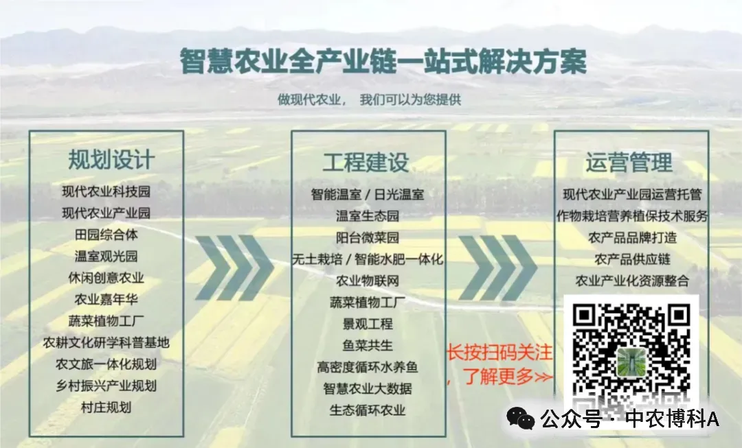 ··········· END ···········中农博科是由华南农业大学陈日远教授牵头成立的一家集设施蓝莓产业投资开发、现代农业项目申报、农业工程设计、农业工程项目施工建设、农业园区运营托管、农产品供应链为一体的全产业链服务商。产业投资 -规划设计-智慧农业-设施农业-园区运营一站式解决方案