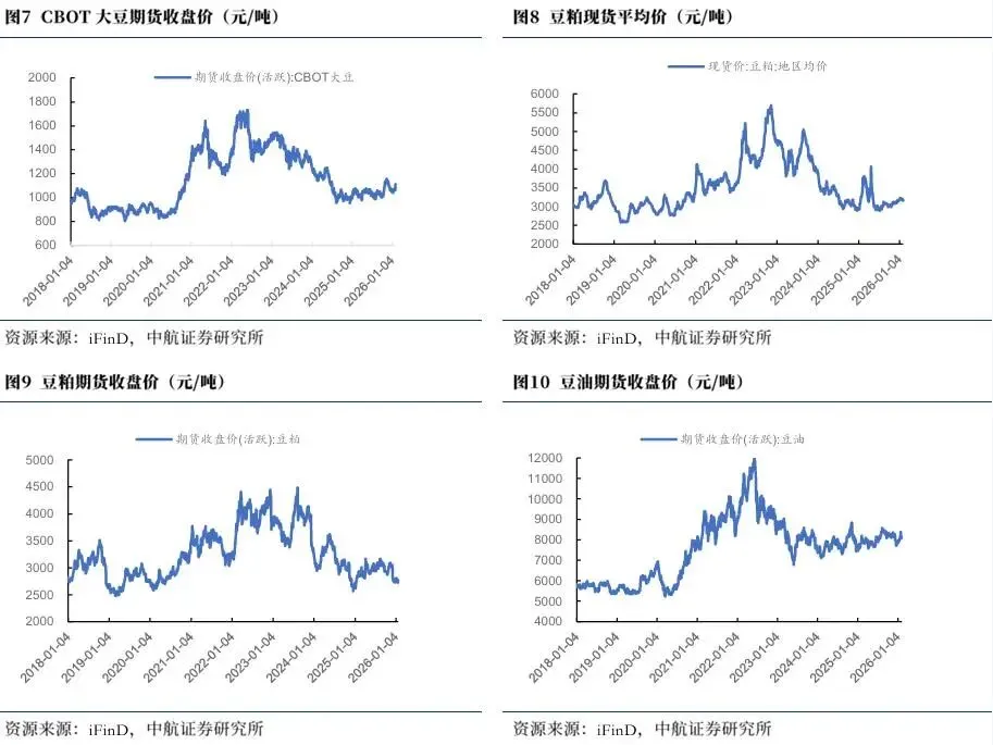 大豆:大豆现货平均价周环比涨0.00%,CBOT大豆期货价格周环比涨3.14%。