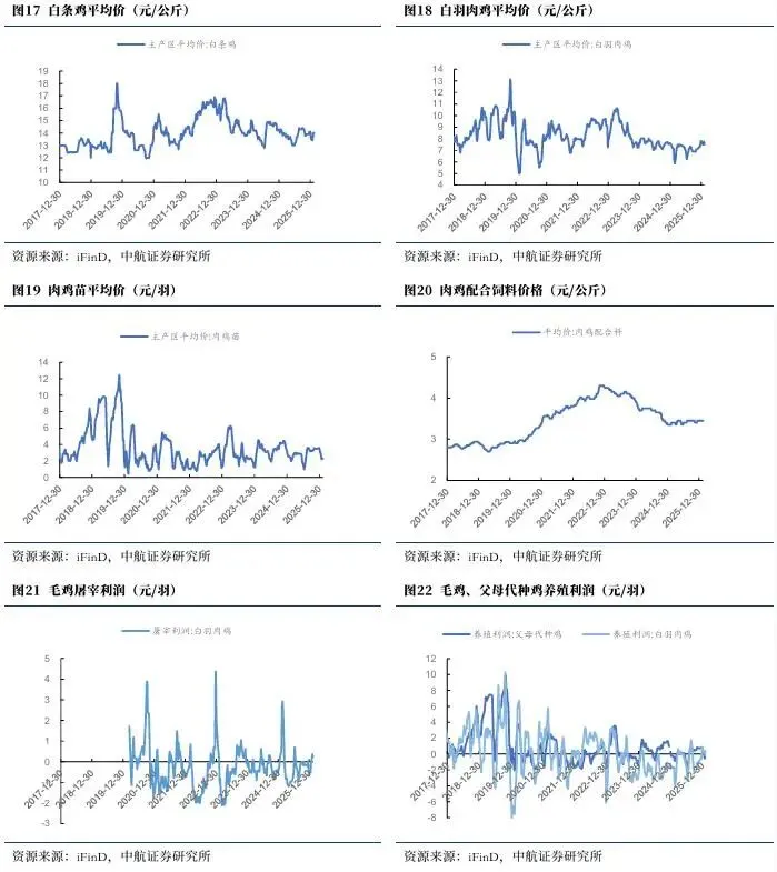 养殖利润:毛鸡养殖利润周环比涨0.06元/羽。