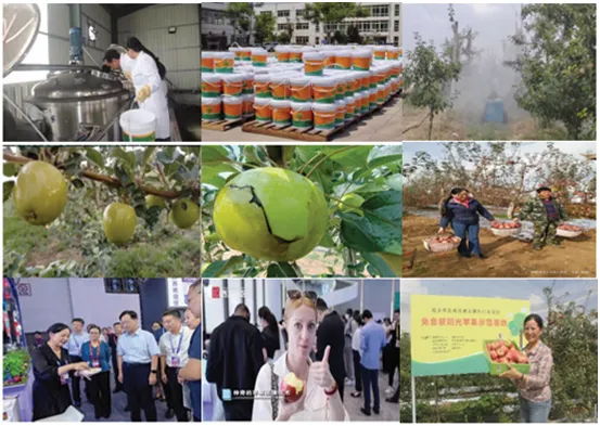 腐植酸型苹果免套袋膜剂(简称苹果面膜)是通过对天然高活性产物腐植酸优化改性,研制的具有抗菌、防晒、遮光、吸水、保水、防护、营养水果等功能的苹果免套袋膜剂。膜剂分为A剂和B剂,A剂含有从煤炭中活化提取的表面活性腐植酸,有提高水果品质的作用;B剂具有交联、防裂果作用,在喷施A剂后迅速喷施B剂,可在苹果表面形成一层高分子水性有机膜,AB剂单独使用,分别是两种植物生长促进剂和营养剂,具有肥料功效,混合使用则迅速成膜,膜剂绿色、安全、环保。项目旨在解决果农“套袋难、成本高、效益低、污染大、品质差”的问题。