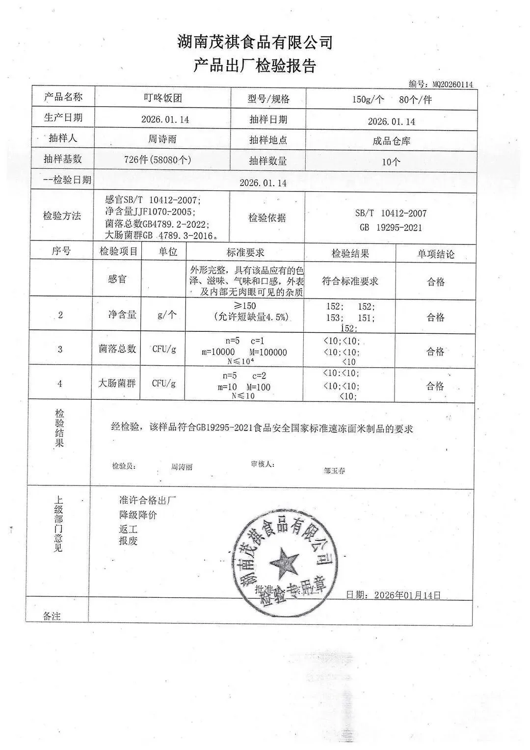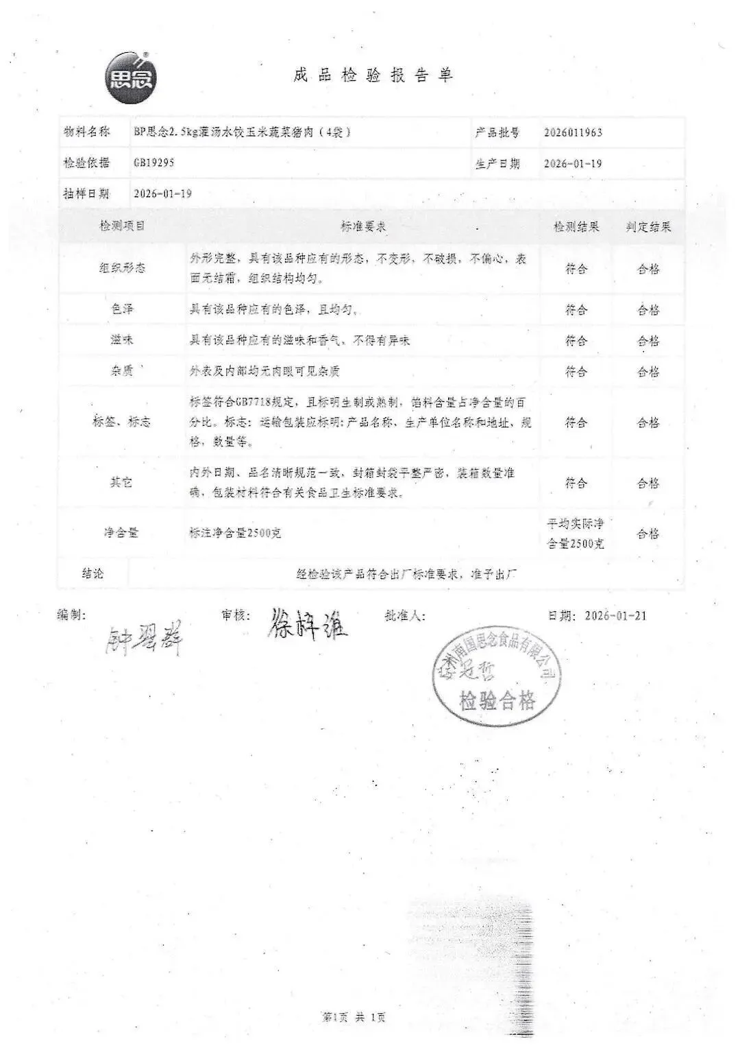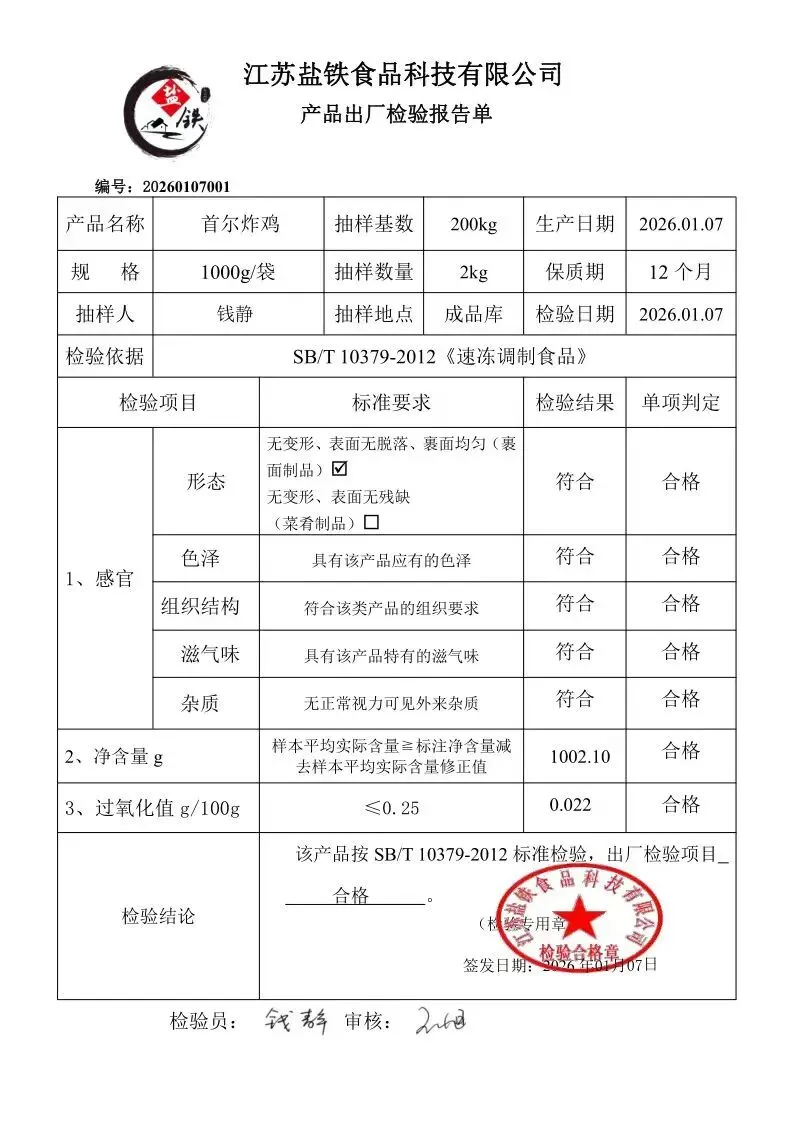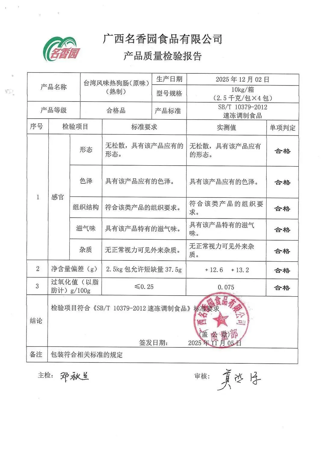冻品、水饺、丸子、热狗、腊肠检测报告