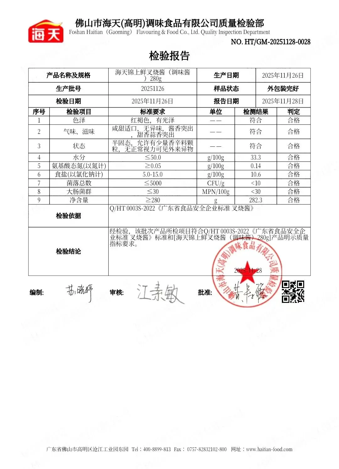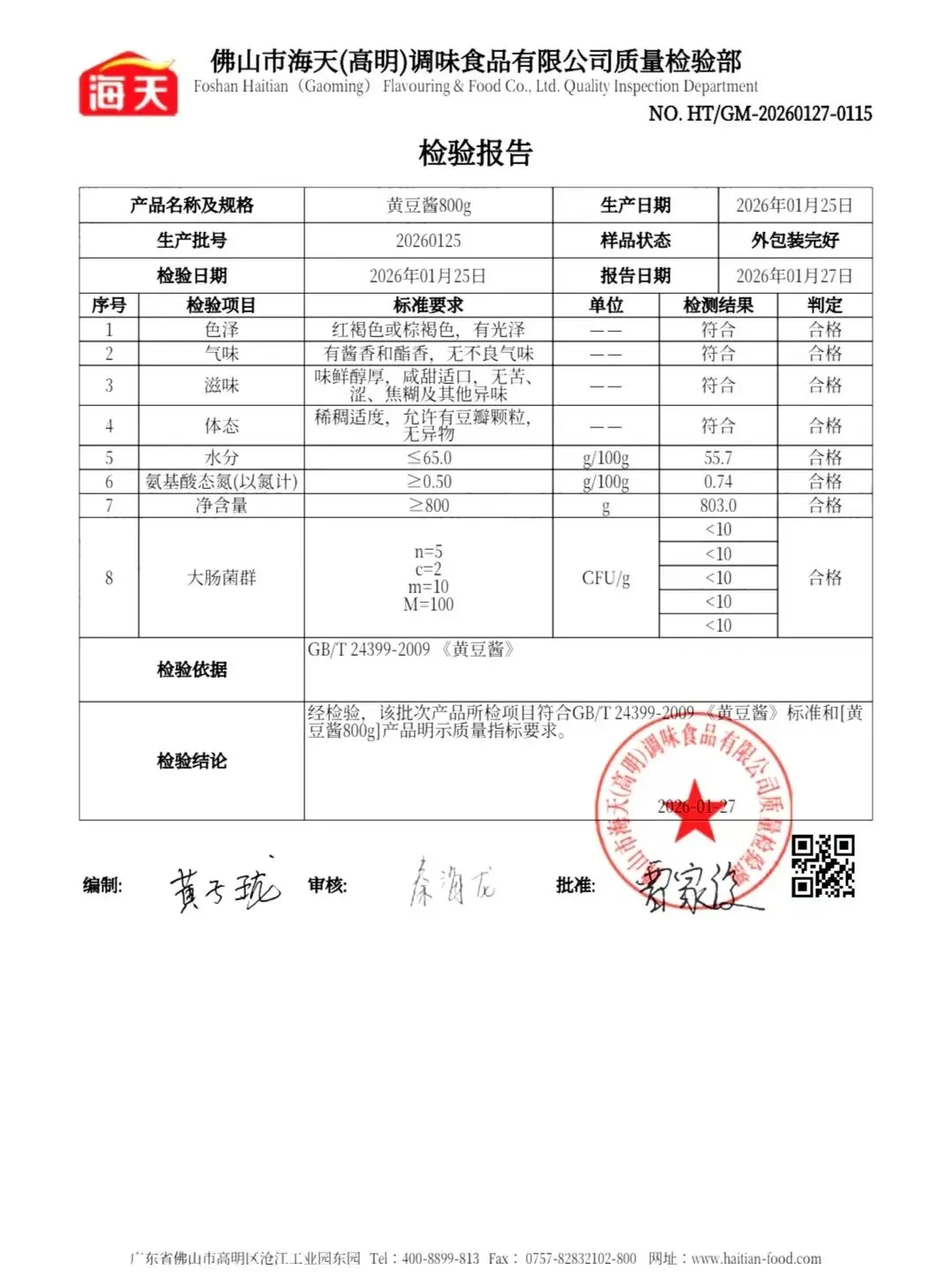 调味品(海天、酱料、杂货、酒类、雀巢奶粉)检测报告