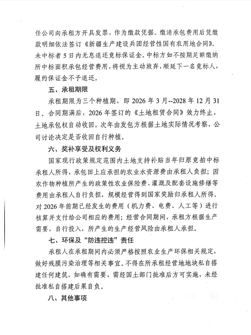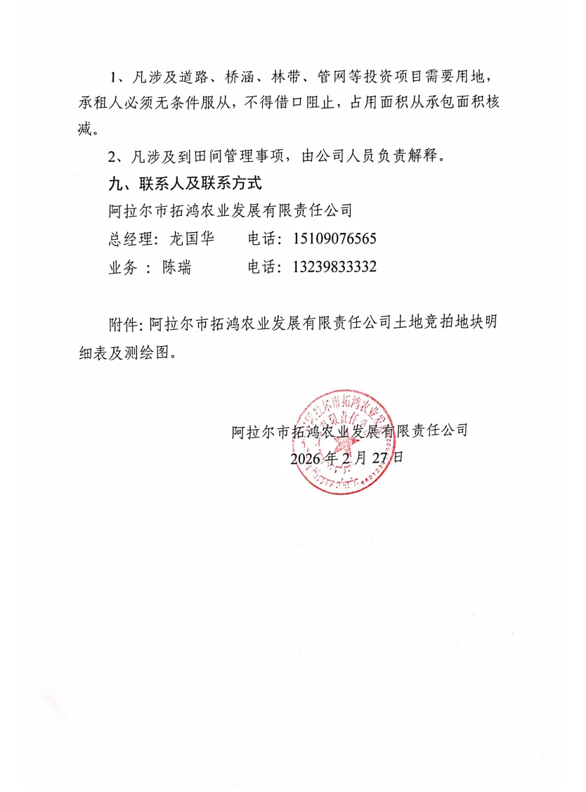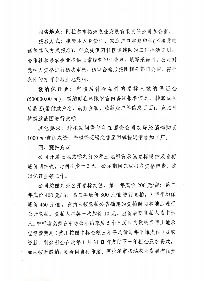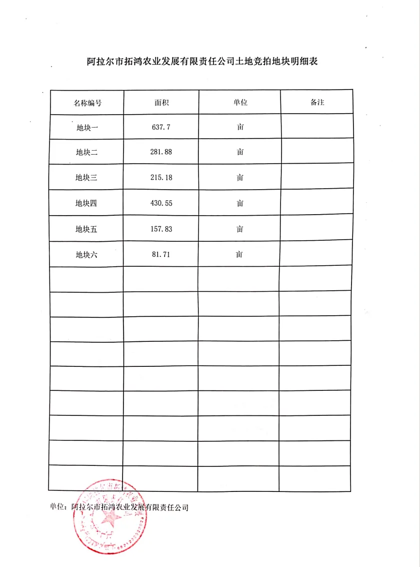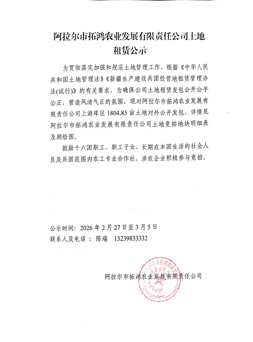 阿拉尔市拓鸿农业发展有限责任公司土地租赁公示