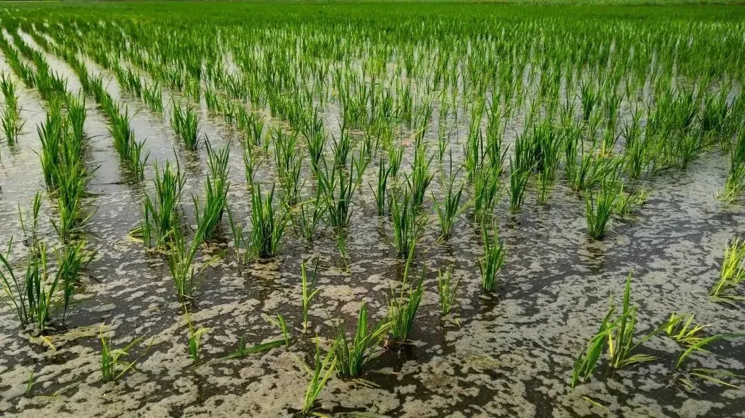 改良后的盐碱地上种植的水稻