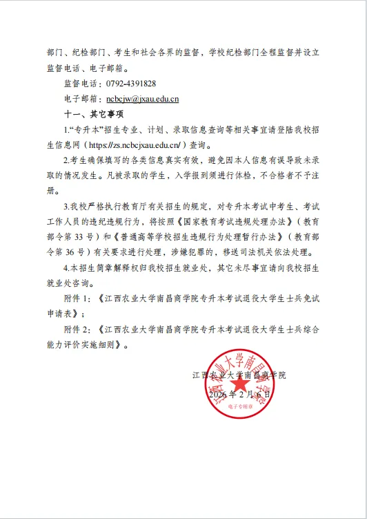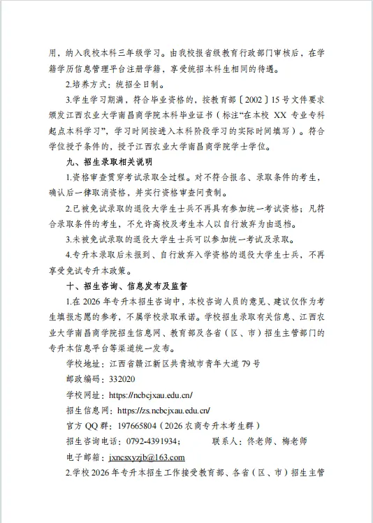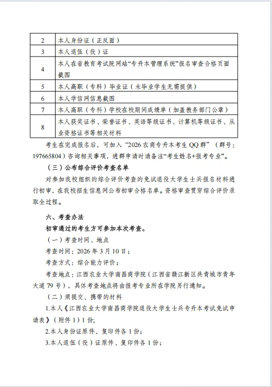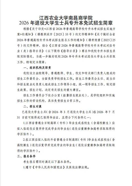 >江西农业大学南昌商学院2026年退役大学生士兵专升本免试招生简章