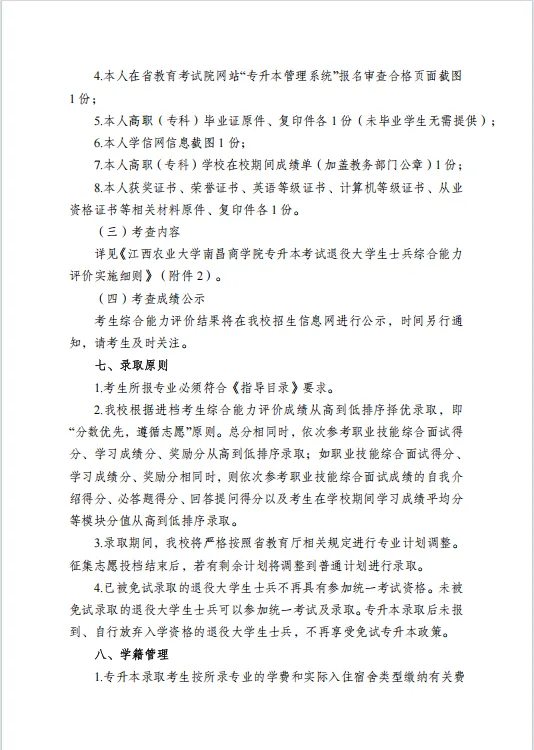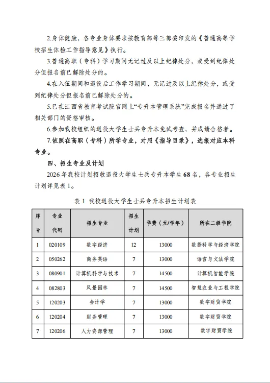 江西农业大学南昌商学院2026年退役大学生士兵专升本免试招生简章